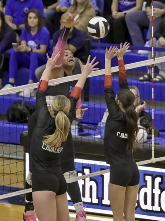 (L to R) CLKM #6, SM #9, CLKM #4 South Medford wins over Clackamas in 3 sets (25-17, 25-7, 25-12) Photos By: Joel Takarsh