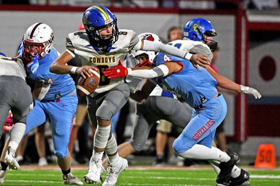 Ashland linebacker Gavin Levorse (4) sacks Crook County quarterback Hayden Allen (8) in the second quarter at Walter A. Phillips Field in Ashland on Friday.