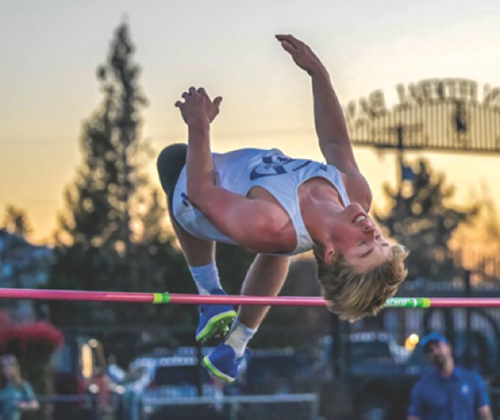 GP's Dirk Ely wins high jump at 5' 8" (first attempt) photos By: Joel Takarsh