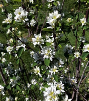 Amelanchier alnifolia fits this pattern precisely. And now, it is beginning to show its ebullient self in full, fluttery flower.